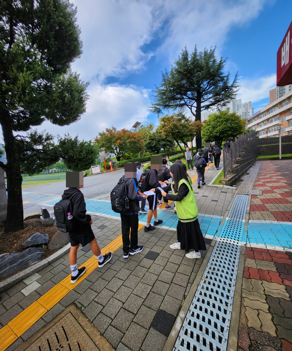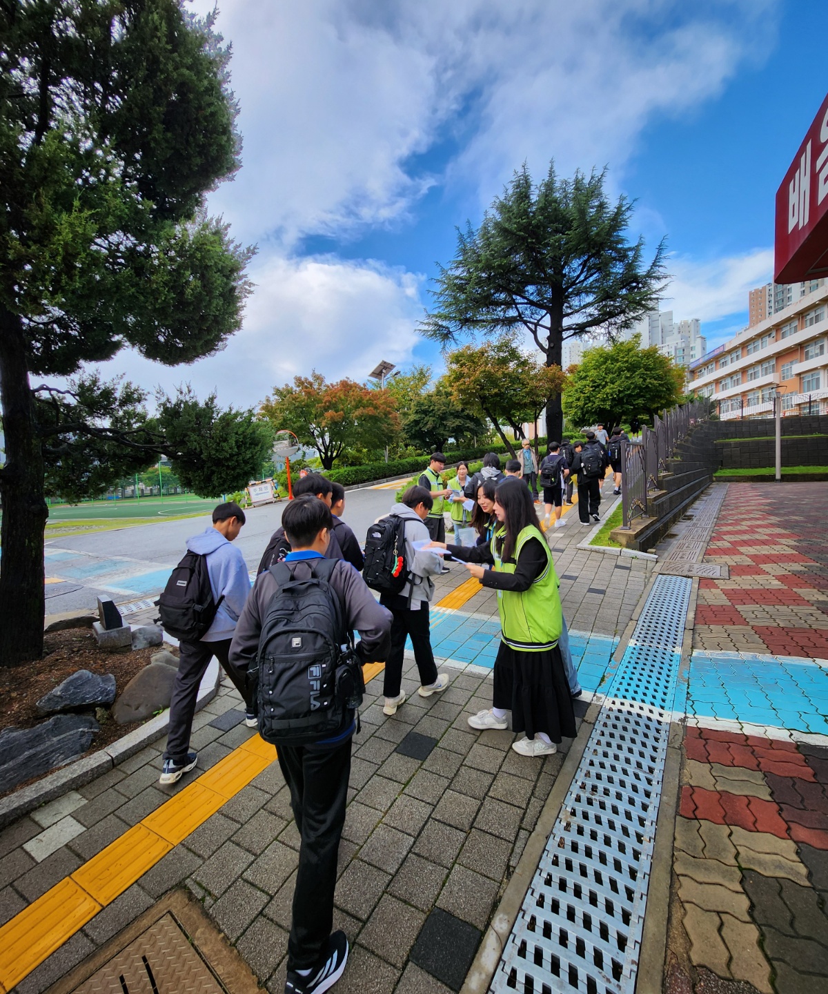오늘 저희 센터는 이른 아침부터 주변 중학교 앞으로 향했습니다.