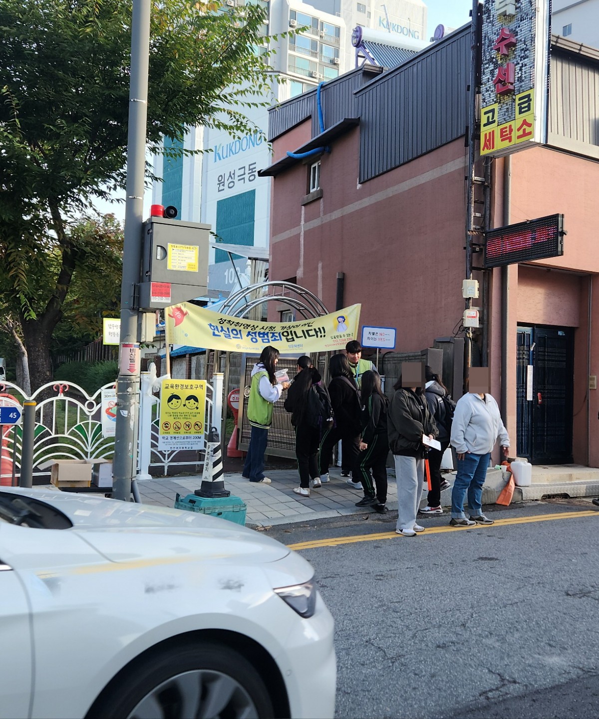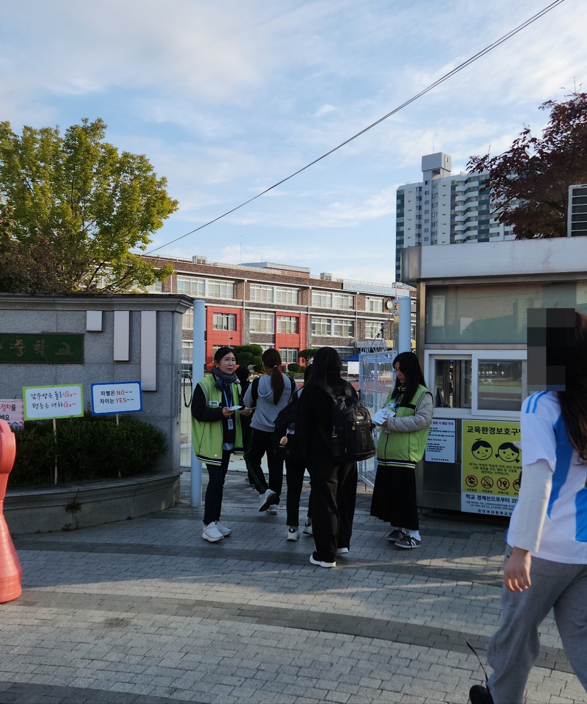 학교 앞을 오가던 학생들은 캠페인 문구를 진지하게 바라보며 이야기를 나누고, 친구들과 함께 성평등의 의미를 되새기는 모습을 보여주었습니다.
