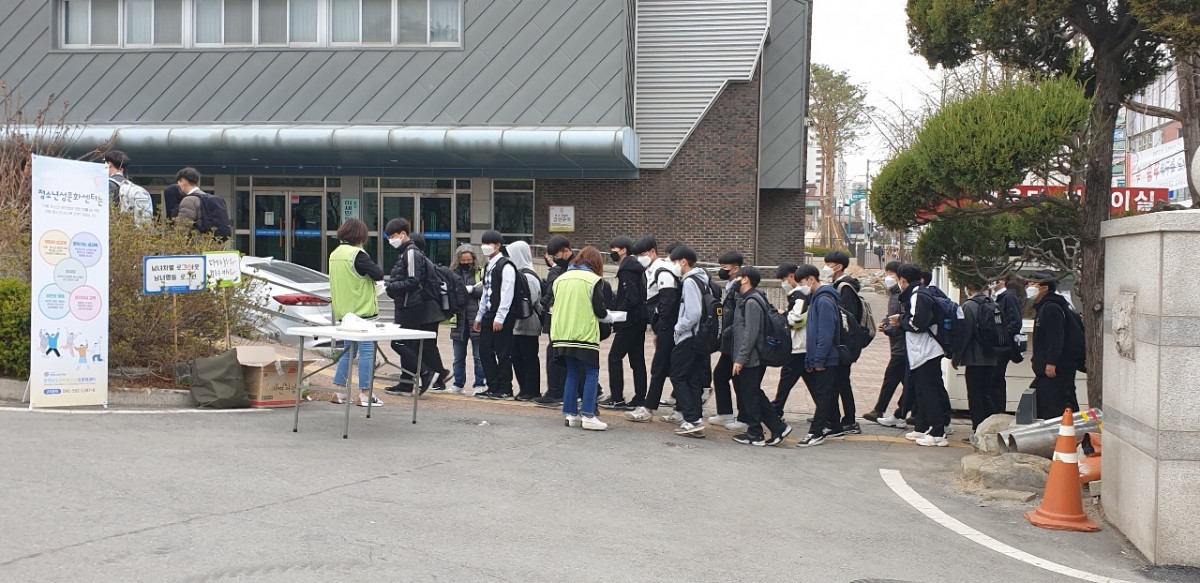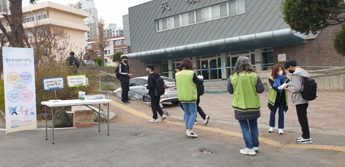 천안중학교 등굣길 성평등 캠페인 2460 | 천안성문화센터 | 2022-04-07 4월7일 센터 인근에 있는 천안중학교 등굣길 캠페인을 진행하였습니다.홍보물과 리플릿을 전달하는 손끝에 애정과 관심을 가득담아 마음을 전하였습니다.눈빛을 마주하는 학생들과 " 힘내요!, 화이팅!" 긍정의 메세지를 나누었던 매우 행복한 시간이었습니다.더 많이 행복하고 더 많이 웃을수있는 우리 아이들의 세상이 왔으면 좋겠습니다....♡