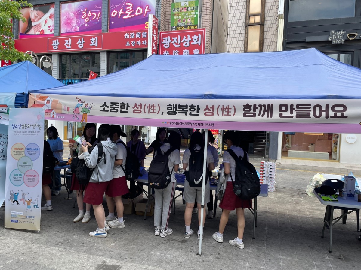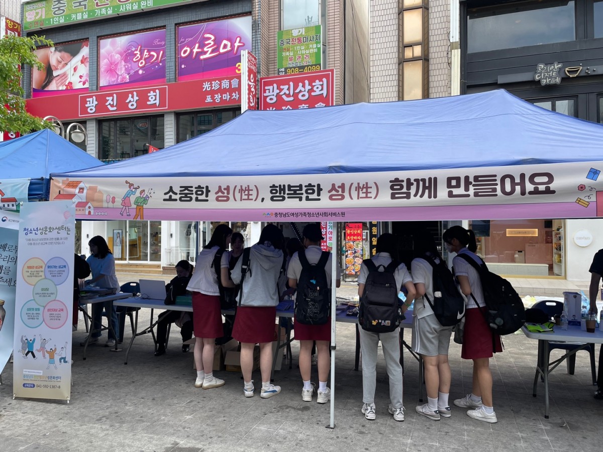 2023년 청소년의 달 기념행사 1643 | 천안성문화센터 | 2023-05-25 2023년5월19일 청소년의 달 기념행사 체험부스를 운영하였습니다.천안성문화센터 전직원이 함께 운영한 체험부스에서는 청소년 성문화 탐색과 긍정의 메시지를 나누었던 매우 행복한 시간이었습니다.청소년성문화센터의 홍보물과 리플릿을 전달하는 손 끝에 애정과 관심을 가득담아 마음을 전하였습니다.