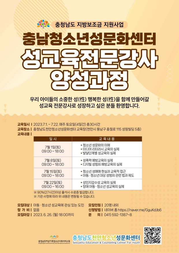 (마감) 충남청소년성문화센터 성교육전문강사 양성과정